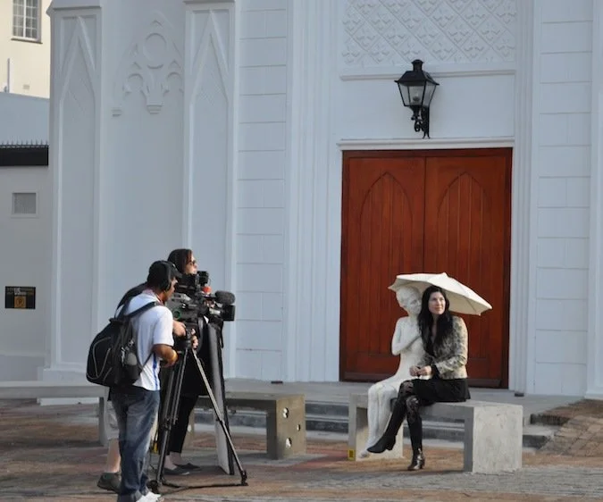 Stellenbosch Public Art Umbrella Girl filming for Pasella, 2014