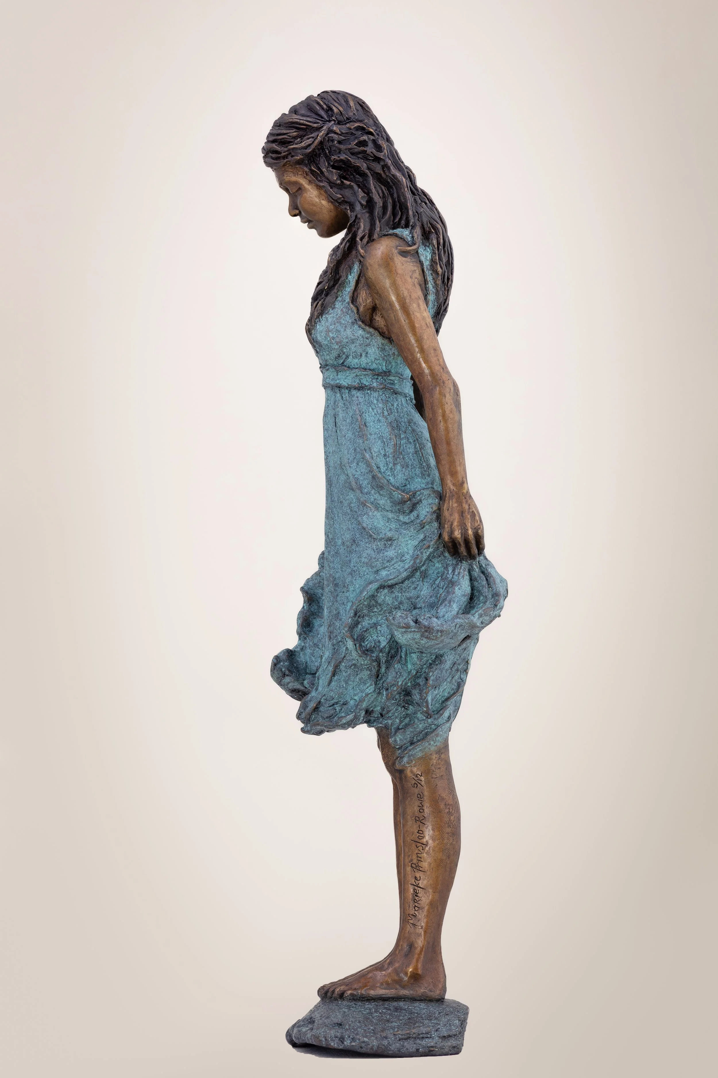She stands, where sea meets shore. Where wind meets land; the meeting place of the great elements. The sea-green turquoise blue colour; reminds me of the colours one can find seeping from the the sea cliffs where veins of copper meet the salty air.