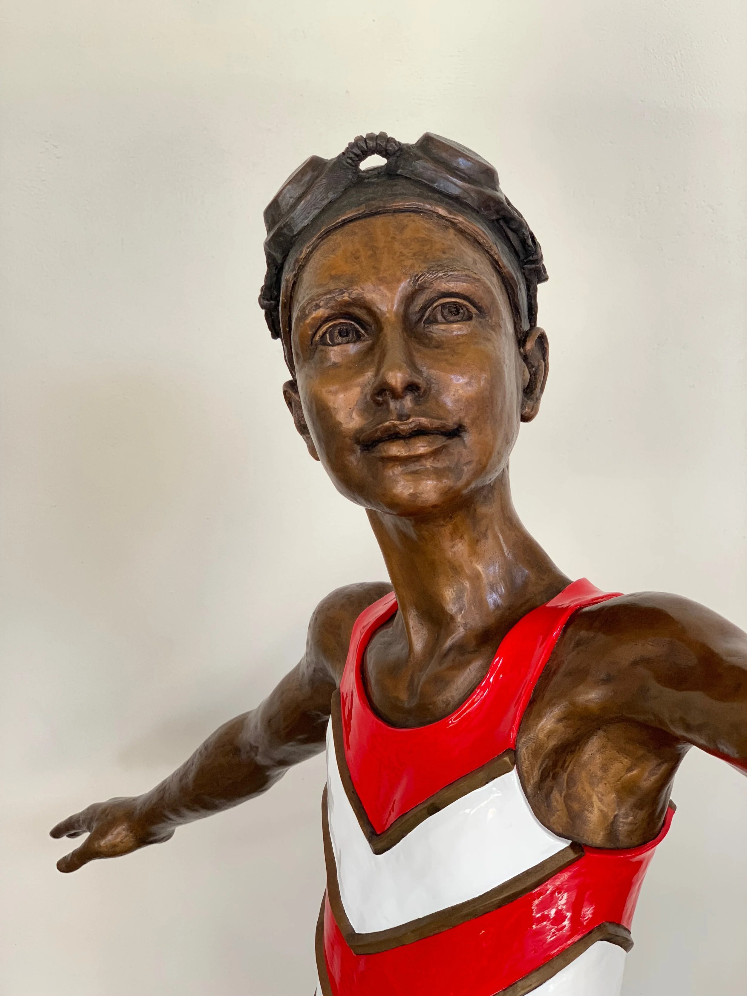 Here I am masking off the bronze to set the lines for her Bathing Costume.