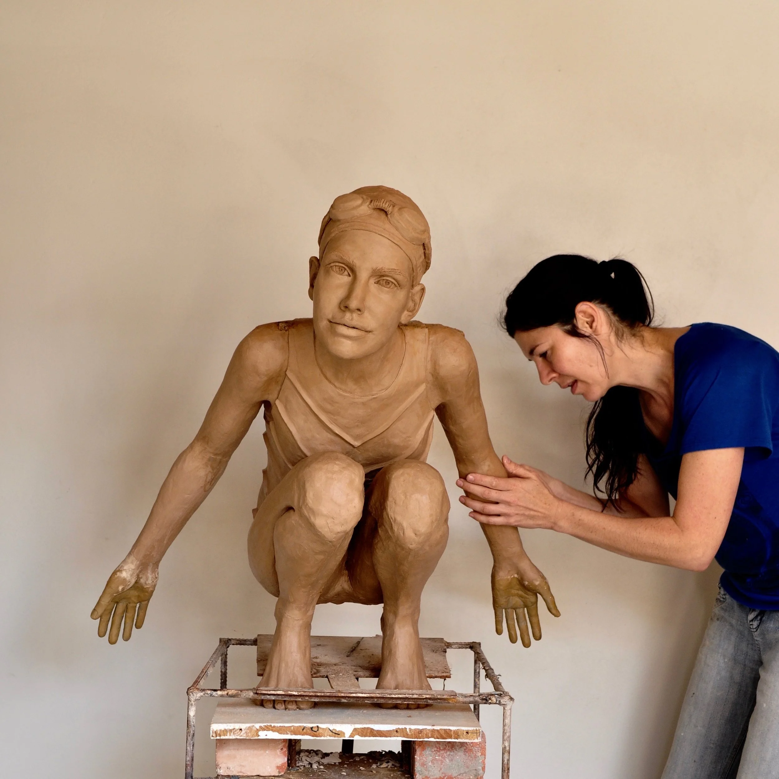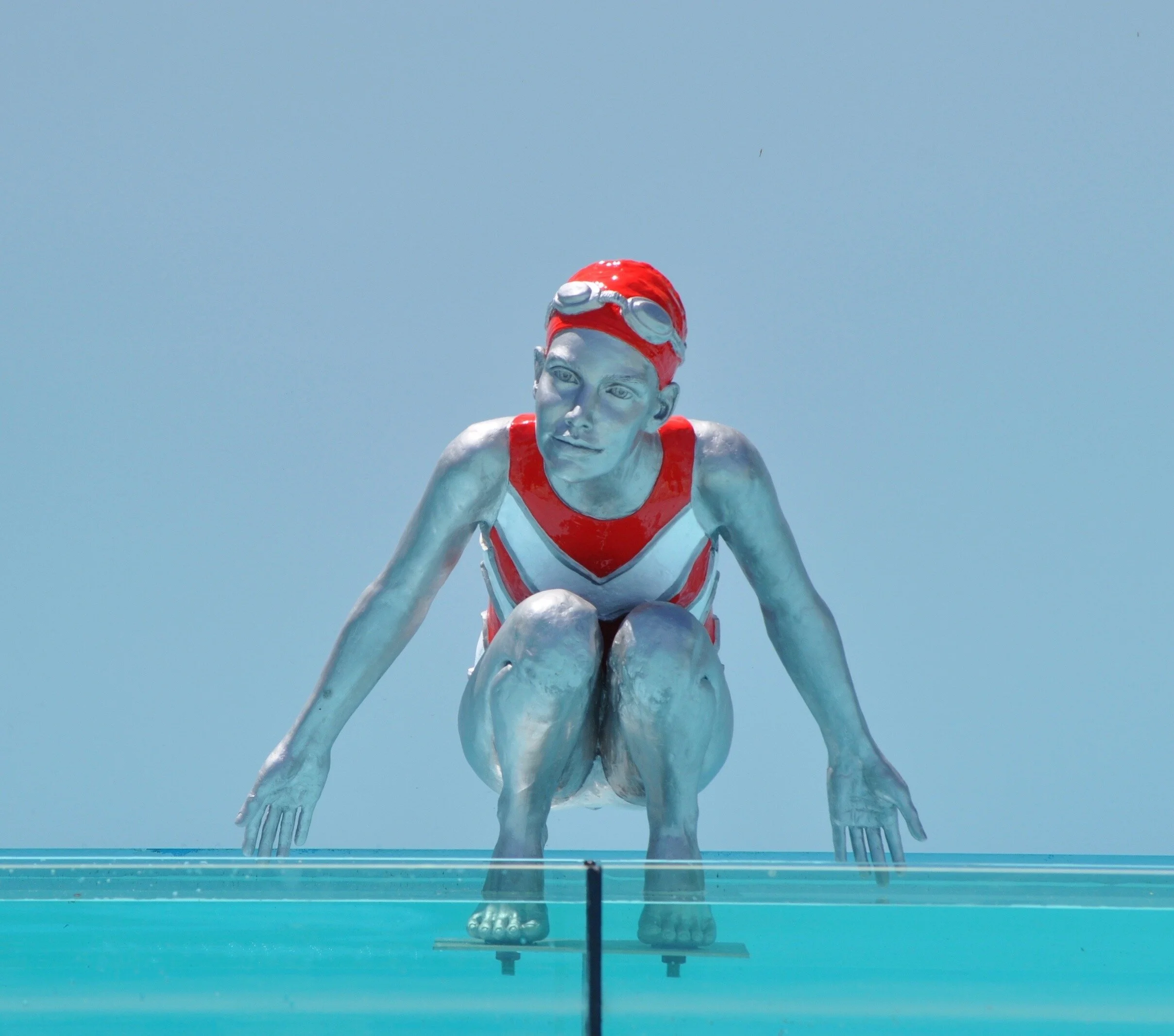 'She sits on her toes by the water, almost touching the surface of the water with her fingertips. She captures the moment between the start of a race, the posture and tension of the starting blocks and the spring to dive - and yet also the delight of simply, dreamily, being near the water that is her home.'
